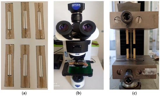 Tensile strength measurements: (a) sample preparation; (b) measurement of fiber diameters using optical microscope imaging and (c) tensile loading machine.
