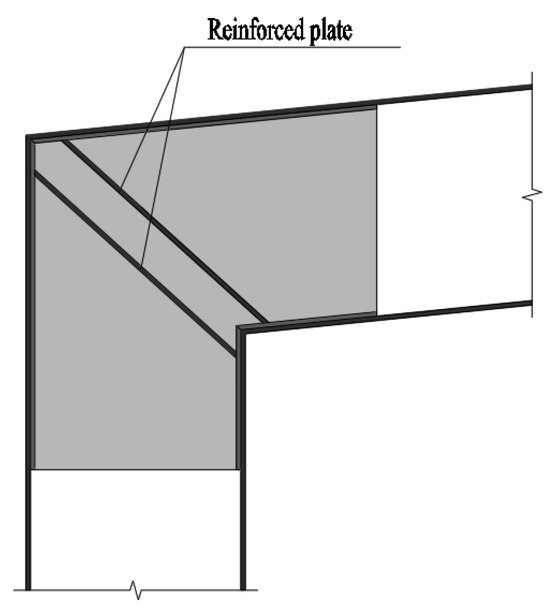 According to the characteristics of the damage, structural strengthening measures such as adding partitions can be adopted, as shown in Figure 22. This partition can effectively improve the buckling resistance of the groove type connector’s web plate (out-of-plane), while providing effective support for the flange of the groove type connector, thereby comprehensively improving the load-bearing performance of aluminum alloy portal frame beam-column joints.