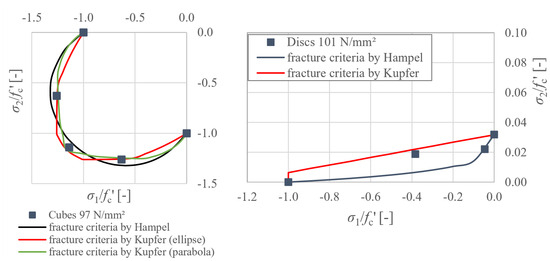 If fracture criteria are introduced in the future, Kupfers’s biaxial compressive stress criteria [11,12] can be used, but, for compressive-tensile stress, a new criterion should be defined to make better use of the material.