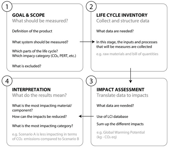 A study was performed on the environmental impacts of ventilation units using the LCA methodology. The methodology is based on four main steps, illustrated in Figure 4: (1) goal and scope (2) inventory analysis, (3) impact assessment, and (4) interpretation of results.