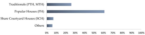 2] has distinguished seven housing types. All traditional households are included in a single group without subdivisions, which accounts for 26.3% of the total dwellings according to the Population and Inhabitation General Census [