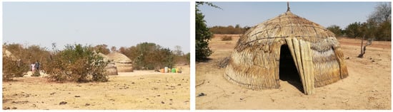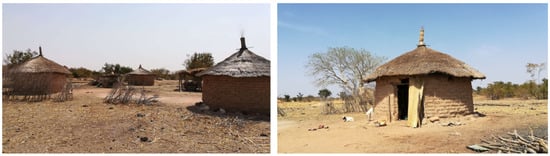 15]. As we move north, there is a greater presence of temporary housing types, since non-sedentary ethnic groups, such as the Peul (also known as the Fulani or Fula people), migrate from north to south as a function of their needs. The ethnic groups that still preserve semi-nomadic lifestyle patterns are the Bella, Peul and Tuareg. The dwellings of the Bella and Tuareg differ in size and shape from the Peul units. However, due to the requirements of a non-sedentary way of life, they all have an ephemeral character in common, which translates into easily available materials and speed of construction. We will therefore focus our analysis on the temporary Peul houses and the sedentary houses inhabited mainly by the Mossi. It should be noted that the Peul represent approximately 6.7% of the country’s population, and the Mossi represent 47.9%. Both ethnic groups in total make up more than half of the population.