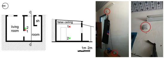 Where the effect of the roof has been deemed critical, the cells have been placed at a distance of 30–40 cm from it to avoid direct transmission of the heat flow. Likewise, at floor level, we have raised the sensors where possible, to detach them from the surface exposed to thermal anomalies. The outer sensors have been suspended from vegetal elements like trees or shrubs in the shade and are located in a ventilated place. Also, we had to bear in mind the diverse attitudes of the inhabitants towards monitoring their homes.