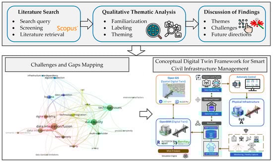 | [47] | Design and implementation of a smart infrastructure digital twin. | Literature review and case study | Emphasizes systems perspective and data management in digital twin design. | Multidisciplinary nature, lack of processes, systems perspective, non-technical considerations. |
