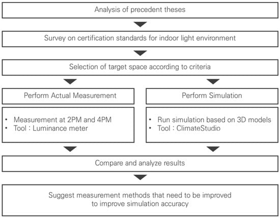 Park, J.; Lee, K.; Kim, K. Comparative Validation of Light Environment Simulation with Actual Measurements. Buildings 2023, 13, 2742. https://doi.org/10.3390/buildings13112742