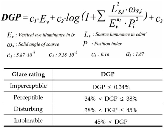 - Lee, S.; Lee, K.S. A Study on the improvement of the evaluation scale of discomfort glare in educational facilities. Energies 2019, 12, 3265. [Google Scholar] [CrossRef]