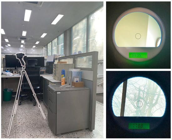 - The research methodology for this study involved conducting actual measurements and simulations of luminance in three selected workspaces based on specific criteria. Actual measurements were carried out during two separate time slots, 2:00 PM and 4:00 PM, corresponding to the times when sunlight most significantly enters indoor spaces. Daylight glare probability (DGP) was chosen as the measurement metric for comparison with the actual measurements. This choice was influenced by the widespread use and validation of the DGP for evaluating the probability of daylight-induced glare in spaces, following its proposal by Wienold and Christoffersen in 2006. To perform these simulations, ClimateStudio (Version 1.9) [12] was selected as the simulation program for the study due to its ability to measure glare based on DGP and its effective integration with Rhino, a popular architectural modeling tool.