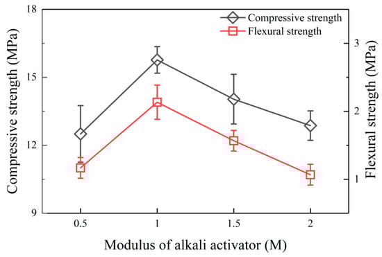 The compressive strength and flexural strength of bricks with different moduli of alkali activator.