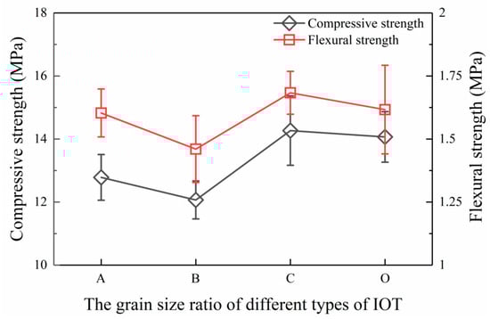 The compressive strength and flexural strength of bricks with different grain size ratios of IOT.