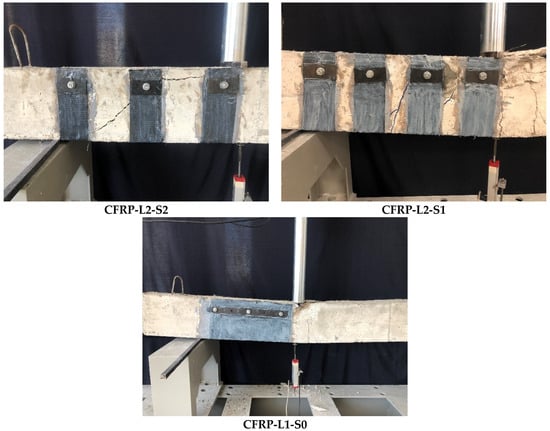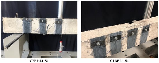 - Specimens CFRP-L2-S2 and CFRP-L2-S1 were strengthened with 2 layers of CFRP strips by spacing 250 mm and 167 mm, respectively.