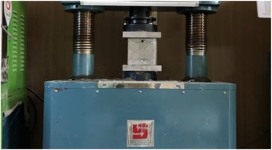 The samples underwent a wet curing process at a temperature range of 23 °C ± 2 °C for 28 days following ASTM C511 [26]. The compressive strength tests were conducted using a digital compressive material tester, the HCT-DH 200 from Heungjin, the same tester used in the mortar compressive strength experiments [27].