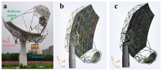 - Shi, M.; Bai, Y.; Liu, G.; Wu, Y.; Liu, S. Structural Modelling and System Simulation Analysis of SKA Radio Telescope Dish. Radio Commun. Technol. 2019, 45, 431–436. [Google Scholar]