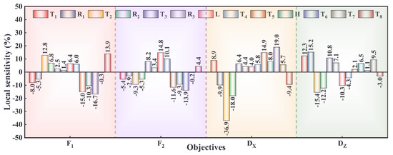 - Sensitivity analysis results unequivocally identified the structural parameters with the most substantial influence on the overall characteristics of the radio telescope, including F1, F2, DX, and DZ, pinpointing T6, L, T2, and R1 as the most impactful variables, respectively.