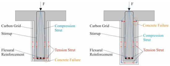 Strut-and-tie models for RC components with II-shaped (left) and U-shaped strengthening (right) Formularbeginn.
