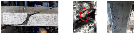 Beam PB-G-4; (left): shear failure; (middle): rupture of the stirrup; (right): cracks at the bottom of the web.