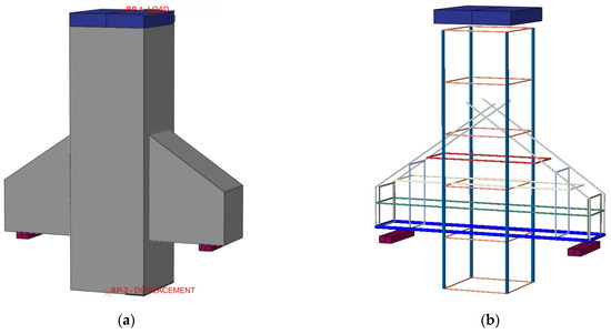 Reduced integration hexaedric cubic elements of type C3D8R were used to represent the concrete and loading plates. Furthermore, T3D2-type truss elements were used to simulate all the model’s reinforcement.