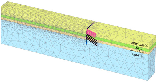 Three-dimensional finite element model of foundation pit.