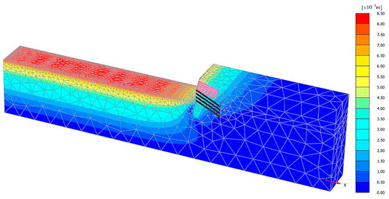 Total deformation cloud map of foundation pit at the final excavation stage.