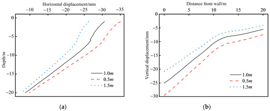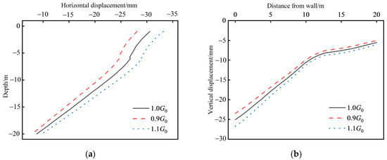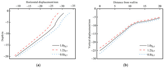 Results of sensitivity analysis of parameter : (a) horizontal displacement; (b) vertical displacement.