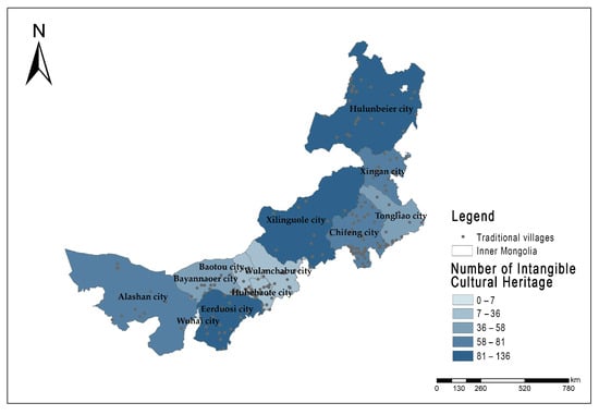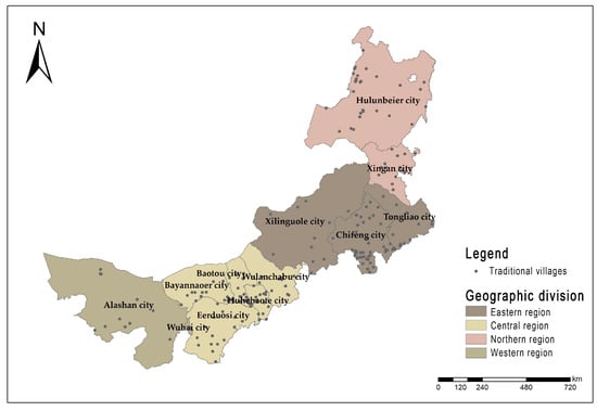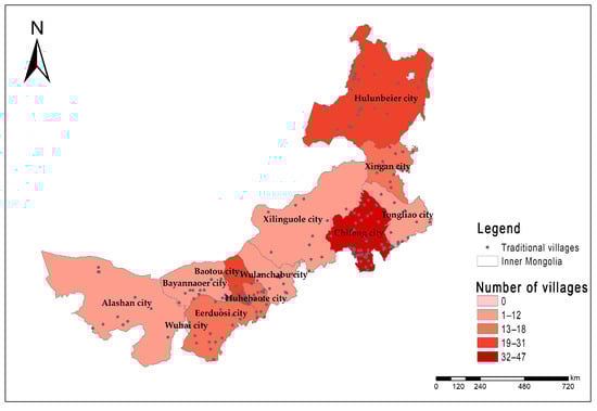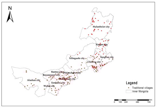 Regional distribution map of traditional villages in Inner Mongolia.