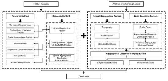Using 207 traditional villages in Inner Mongolia Autonomous Region as the research object, this paper uses the nearest neighbor index, imbalance index, geographical concentration index, and spatial Gini coefficient to quantitatively analyze the spatial distribution of traditional villages in Inner Mongolia by using the spatial analysis tool of ArcGIS10.7 and Excel correlation function and calculates the nuclear density. The distribution characteristics of traditional villages in Inner Mongolia are summarized. Secondly, the buffer analysis tool is used to analyze the influence of natural geographical factors and socio-economic factors on the spatial distribution characteristics of traditional villages in Inner Mongolia. Finally, the factor detection method in the geographical detector is used to analyze the intensity of each factor on the spatial differentiation of traditional villages in Inner Mongolia (see Figure 2).