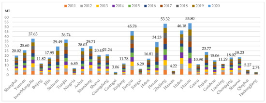 Carbon emissions in 30 provinces of China’s construction industry from 2011 to 2020.