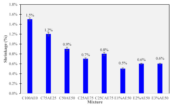 Understanding the shrinkage characteristics of different CAM mixtures is vital for assessing their behavior over time. Figure 6 provides insights into the expansion or shrinkage characteristics of each mixture.