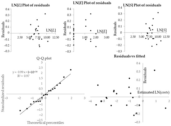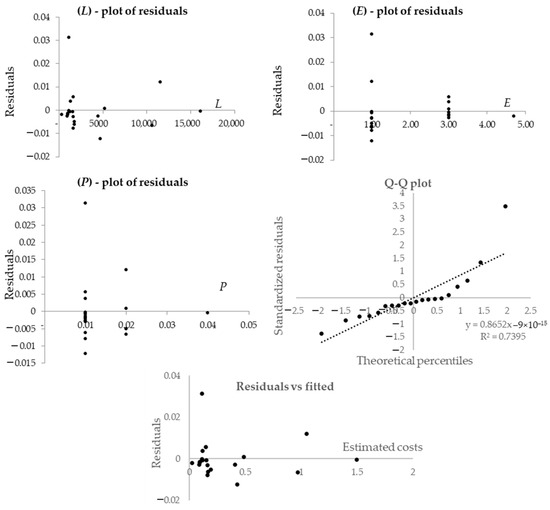 From the results of the statistical tests, it is possible to determine the significant variables (that satisfy the t-test) for each functional model for the two groups of projects and the four categories of work. Furthermore, it is possible to identify the best functional model (the model that has the highest adjusted R2 value).