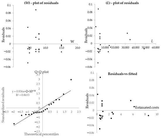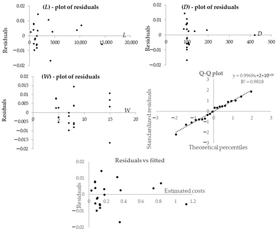 In the estimation of the costs of road works using regression models, many research studies have been reported. In the study by Mahamid (2011), 11 cost estimation models were developed for road construction projects and tested on 131 data sets collected in Palestine [28]. In the work of Mahamid and Bruland (2010), multiple linear regression models were developed to estimate the costs of building roads as a function of the physical characteristics of the project [32]. Han et al. (2008) focused on the budgeting phase in highway construction projects in Korea, also developing cost estimation models [33]. Sodikov (2005) focuses on estimating the costs of highway projects in Poland and Thailand [34]. In the work of Bell and Bozai (1987), multiple linear regression models were developed for estimating long-term costs on behalf of the Alabama Highway Department (AHD) [35].