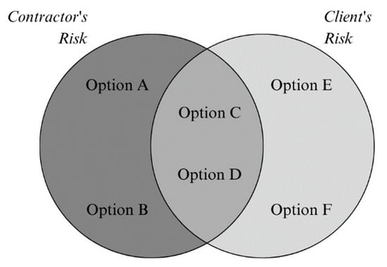 Figure 2 shows the distribution of risks according to the type of Main Option chosen, which is shared between the client and the contractor.