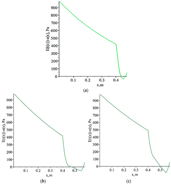 Let the temperature distribution function in the protection fence be . This function has a piecewise linear form and is determined from a finite element calculation of the temperature field based on the average temperature of the coldest five days with a probability of 0.92, according to [38]. To find the condensation zone, we used the technique described by Kupriyanov and Safin [39]. To carry this out, we constructed the dependence , where is the maximum and e is the actual elasticity of the water vapor. The zone, in which is the condensation zone. The approximate dependence of the total elasticity of the water vapor on temperature takes the following form: