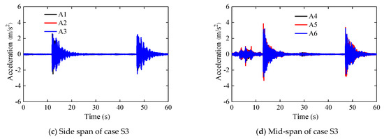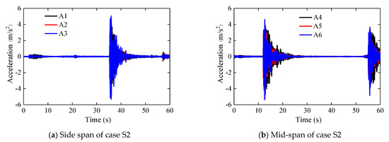 Acceleration time-history plot of cases S2 and S3.
