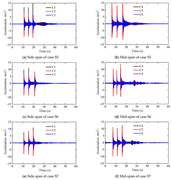 Acceleration time-history plot of cases S5~S7.