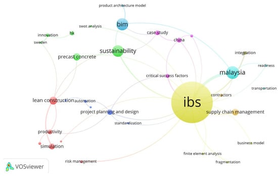 As shown in Figure 3, industrialized building system (IBS) was the highest frequented keyword related to OSM. Nonetheless, more keywords related to sustainability, BIM, supply chain management, and precast concrete were also found. This reflects the increasing research interest in OSM while integrating other fields of study such as BIM and sustainability.
