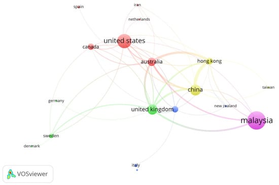 VOSViewer software (version 1.6.19) [] has been widely used for bibliometric analyses [,]. Sources of these OSM-related journal papers were identified using VOSViewer. It is a software tool for visualizing bibliometric networks and is used to output system-based visualized maps. It creates a network that depends on nodes and edges indicating the closeness level of the specified elements. Figure 3 displays the clusters and inter-relations among these keywords.