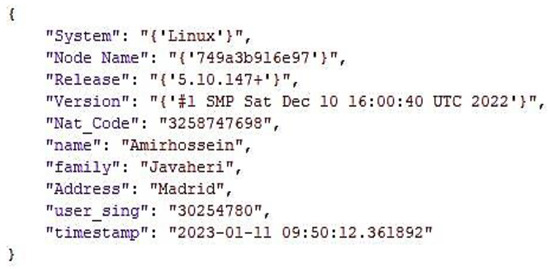 As it is clear from Figure 8 below, all movements are forward, and if the desired transaction is stopped at any stage, that transaction is lost and must be restarted from the beginning. In the first stage, each customer has a public token and a private token, where the private token of each person is the digital signature of that person. At this stage, the customer, having the public token of the desired company, sends his request and specifications to the company and signs the contract. After this step, the customer’s request is sent to the desired company in the form of a JSON file (Figure 9). After checking the structure of the desired house and the customer’s profile, the company signs the contract with the company’s private token, sends the final contract to be stored in the blockchain, and also sends the final version of the smart contract to the customer.