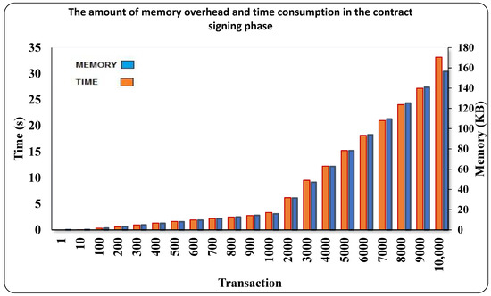 As it is clear from the above figure, the profile of a customer has been sent to the company along with the system profile. The diagram below also shows the amount of memory consumed and the duration of creating and adding a block to the blockchain, as well as the chain from one block to 10,000 blocks (Figure 10).
