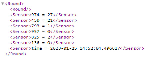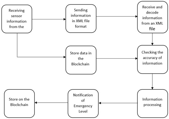 As it is clear from the figure above, since the exchange of information is within the company’s internal network, by using the XML file (Figure 12), the information can be sent to the main source of the company, and the received information is compared with the information inside the blockchain. After the correctness of the information is determined, the amount and level of warning should be issued. In this section, if the alarm level is at level 1, no message is sent to the technician and rescue robots, and if it is at the 1st to 3rd alarm level, depending on the alarm level, robots specific to each alarm level are activated, and according to the ID of the sensors, they refer to the location of the accident.