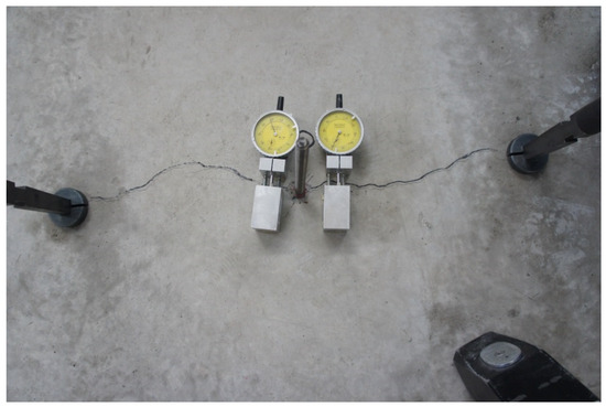 After the anchor installation, the width of crack is increased to the pre-set value by successive blows on wedges. This is how wedges are driven in the holes pre-made in concrete. The crack width is controlled by displacement indicators graduated every 0.01 mm, installed on both sides of the anchor at the maximum acceptable (close) distance from it (Figure 2).