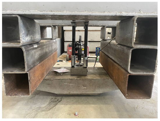 Anchors were embedded in concrete blocks whose compressive strength class was C30/37. This strength class was chosen as the one that is most frequently used in structures of mass construction. Concrete strength will certainly affect the behavior of anchorages; this problem will be solved in further studies. The dimensions of concrete blocks were designed depending on the installation depth and the diameter of the anchor in order not to hinder the concrete cone failure. Concrete blocks, used for testing anchorages in cracked foundations, had structural reinforcement to prevent the splitting of concrete during crack formation. The reinforcement was installed in the bottom zone of the slab, and it did not affect the anchor embedment zone. The reinforcement diameter and the number of reinforcement rods depended on the diameter and the type of anchors to be tested.