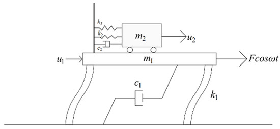 A dynamical system consisting of a tuned mass damper and a single-degree-of-freedom main structure excited by a simple harmonic load is shown in Figure 2. A harmonic excitation with amplitude and frequency is applied to the main structure. The masses of the main structure and the TMD are and , respectively. and are the linear stiffnesses of the springs. is the nonlinear stiffness generated by the springs of the TMD during its usage. and are the linear damping. is the displacement of the main structure and is the displacement of the TMD.