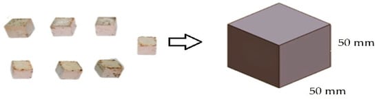 The samples in the shape of a cube had dimensions of 50 mm × 50 mm × 50 mm. The specimens for this research were given a standard size by these measurements, allowing for accurate and dependable testing and analysis of the material’s mechanical characteristics.