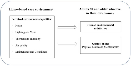 As shown in Figure 1, we proposed a conceptual framework to explain the interaction between perceived housing environmental factors and overall satisfaction and quality of life among the older adult Chinese population receiving home-based care.
