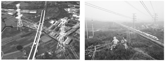 Power grid systems and railway systems are important material foundations of modern society and an important part of lifeline engineering systems. In the past 20 years, high-speed railways have developed rapidly in many countries due to their advantages of safety, efficiency, low energy consumption, and large transportation capacity. At the same time, high-voltage overhead transmission, as the main mode of power supply in countries around the world, has also developed significantly in the past few decades. With the continuous increase in social electricity demand and transportation demand, the power grid and transportation infrastructure are constantly being upgraded and constructed, which brings about the inevitable problem of crossings of transmission tower-line systems and high-speed railways (Figure 1). In the crossover area of the two, once an accident, such as disconnection, string drop, or even tower collapse, occurs, it may cause a large-scale power supply interruption. Therefore, ensuring the long-term safe operation of the power grid system and the railway system across both sections is a matter of great concern to both the power sector and the railway sector.