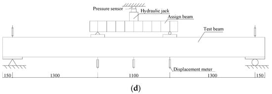 - Ye, J. Study on Calculation Method of Rigidity and Crack Width for Steel Section RPC Simply Supported Beam. Master’s Thesis, Yangzhou University, Yangzhou, China, 2021. [Google Scholar]