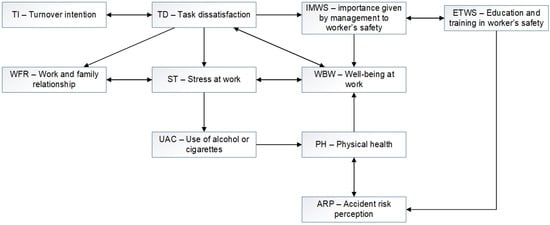Furthermore, the relationship between well-being and the perception of occupational accident risks is still not well understood due to the complexity of these interactions. In this context, VISM emerges as a technique capable of combining the explanatory power for complex phenomena of interpretative structural modeling (ISM) with the statistical validity of structural equation modeling–partial least squares (PLS-SEM), enabling the creation of complex models with strong statistical support, even in non-linear models containing circular and/or cross-relations among constructs [78].