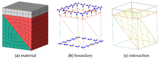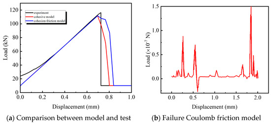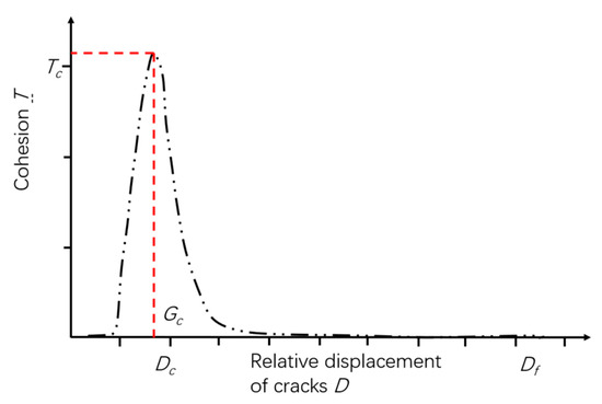 Cohesive traction is a force of interaction between molecules in a material. The cohesive force model is shown in Figure 9. The ordinate is the cohesive force Tc and the abscissa is the crack width D of the fracture surface, where Tc is the crack cracking strength, Dc is the corresponding opening displacement, and Df is the cracking width of the maximum fracture surface, that is, the failure cracking width. The area of the envelope under the curve is the fracture energy Gc of the material, the object from the beginning of cracking to complete separation, that is, the energy dissipated by the cracking width D of the fracture surface from 0 to Df, and the total energy dissipated by the material from the complete state to complete separation.
