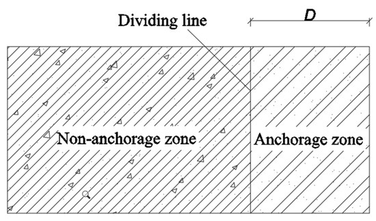 The relationship curve between the maximum principal tensile stress and D in the anchorage zone is shown in Figure 24. When D is −0.6 m, the wheel starts to act on the model, and the anchorage area is subjected to very small forces. When D is −0.15 m, the wheel completely acts on the model, and the force on the anchorage zone can still be ignored. When D is −0.5 m, the wheel begins to affect the anchorage zone and the influence cannot be ignored. Therefore, it can be seen that the dimensional arrangement of the model is reasonable.