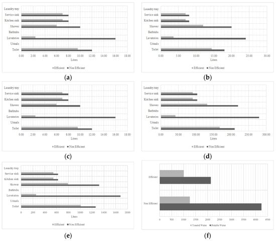 4.1. Analysis of Water Usage According to Plumbing Fixtures and Inhabitant Demand per Day