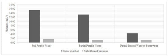 4.2. Sizing Analysis of Hydraulic-Plumbing System Using the Flowrate Calculation Method